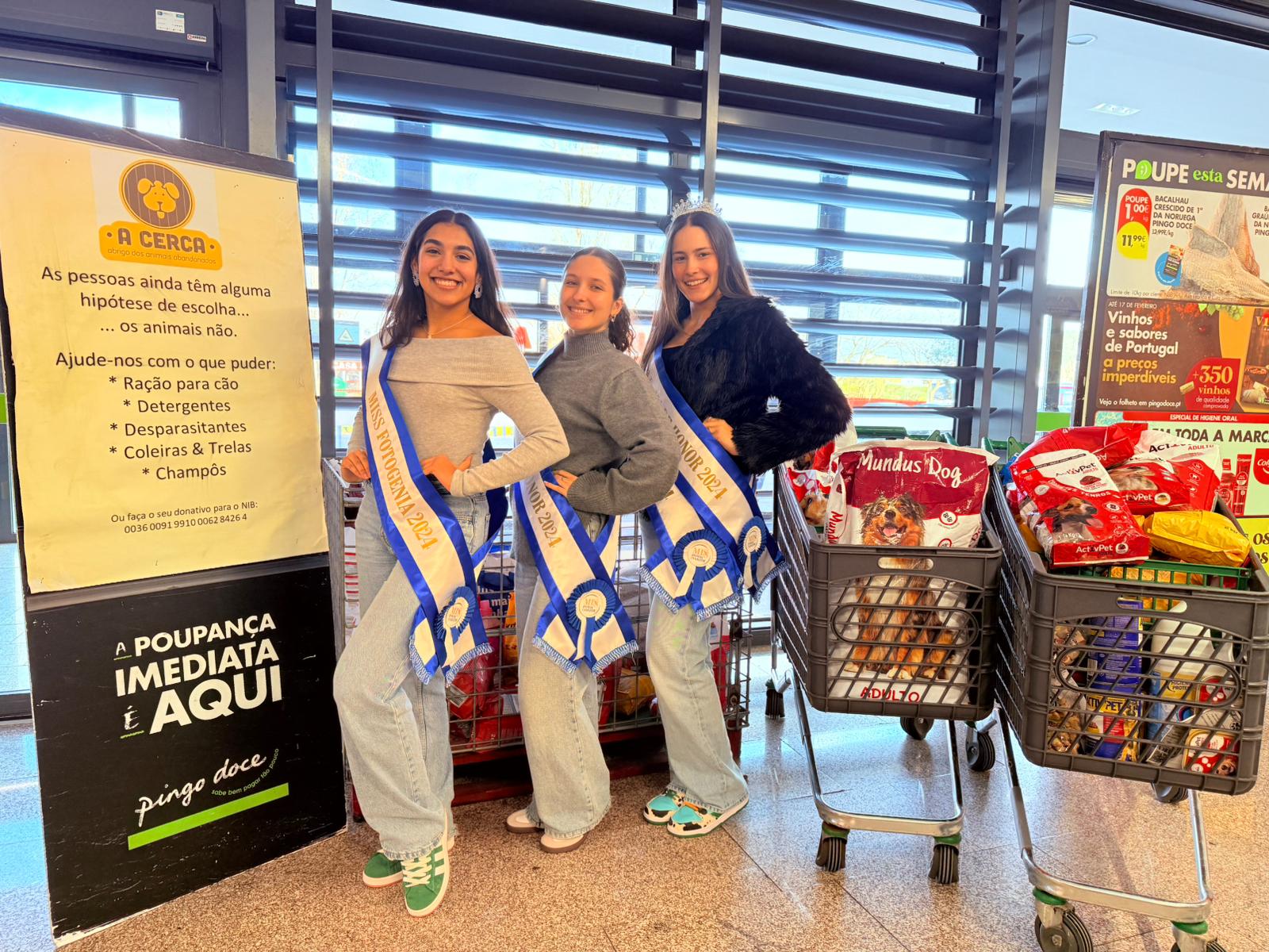 No passado sábado, 25 de janeiro, algumas das finalistas da Miss Póvoa participaram numa ação social em prol dos Animais Abandonados. Numa parceria com o Hipermercado Pingo Doce Argivai e a A Cerca – Abrigo dos Animais Abandonados, elas fizeram uma ação junto dos clientes, com o objetivo de incentivar a doação de ração, desparasitantes, champôs, detergentes, trelas, entre outros.