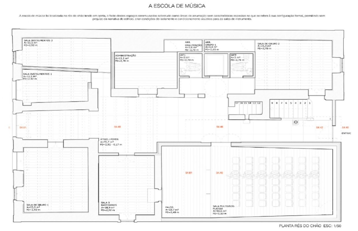 A escola de música vai ser instalada no rés do chão, “de modo a permitir a criação de condições de isolamento e condicionamento acústico para as salas de instrumento”, lê-se num comunicado da Câmara datado de abril de 2021, quando foi anunciada a obra. O museu ficará no primeiro andar. Será ainda criado um espaço de auditório e um espaço escultório, na escada de acesso ao primeiro andar.