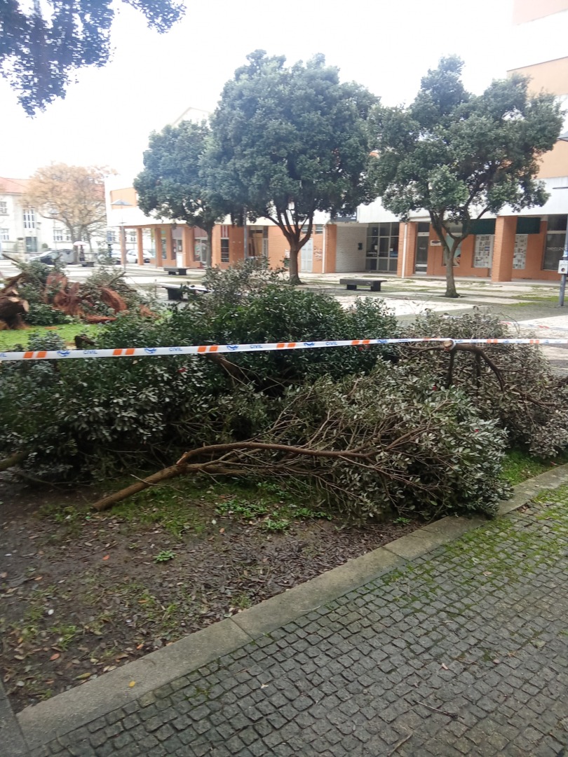 Uma árvore de grande porte caiu na última madrugada na Praça dos Combatentes, localizada em frente à Escola Secundária Eça de Queirós, na sequência do mau tempo que tem afetado a região. A queda ocorreu durante a noite, em momento de vento intenso e precipitação persistente, obrigando à intervenção imediata da Proteção Civil Municipal, que se deslocou ao local para garantir a segurança da área e avaliar eventuais riscos adicionais.