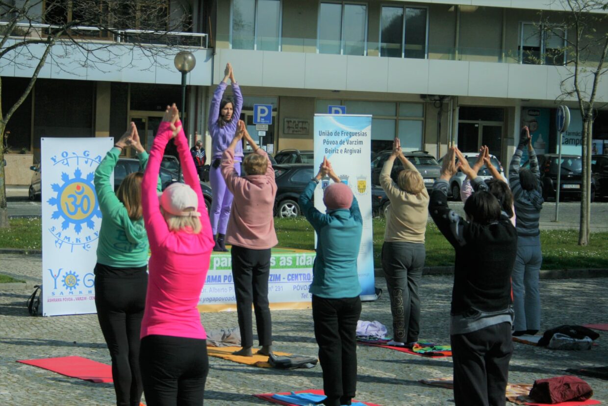 Os utentes da Academia Sénior da União de Freguesias da Póvoa de Varzim, Beiriz e Argivai participaram, na manhã desta quarta-feira, numa aula aberta de yoga realizada na Praça Luís de Camões.