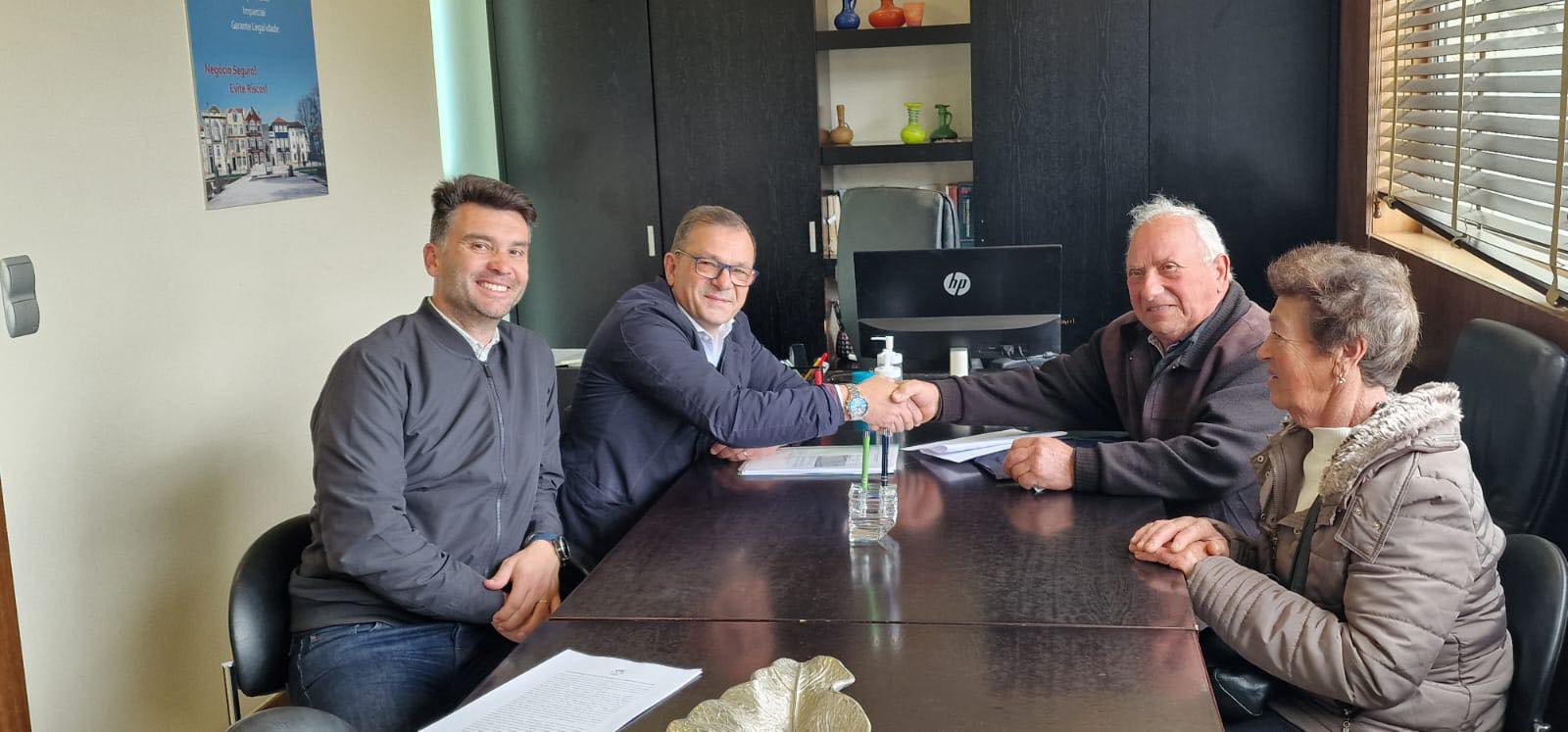 Conforme noticia publicada na edição deste jornal da passada quarta-feira, ocorreu há uma semana, a 27 de fevereiro, uma Assembleia de Freguesia em Aguçadoura, que aprovou por unanimidade a proposta de aquisição do terreno destinado à expansão do cemitério local. Esta sexta-feira, 6 de março, foi realizada a escritura, que contou com a presença de dois membros do executivo da junta, Ricardo Campos, presidente, e o Marcelino Pinheiro, secretário, e Manuel Dourado e Maria Geraldina Dourado, proprietários do terreno.