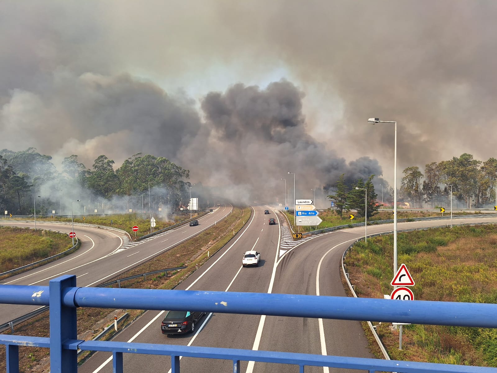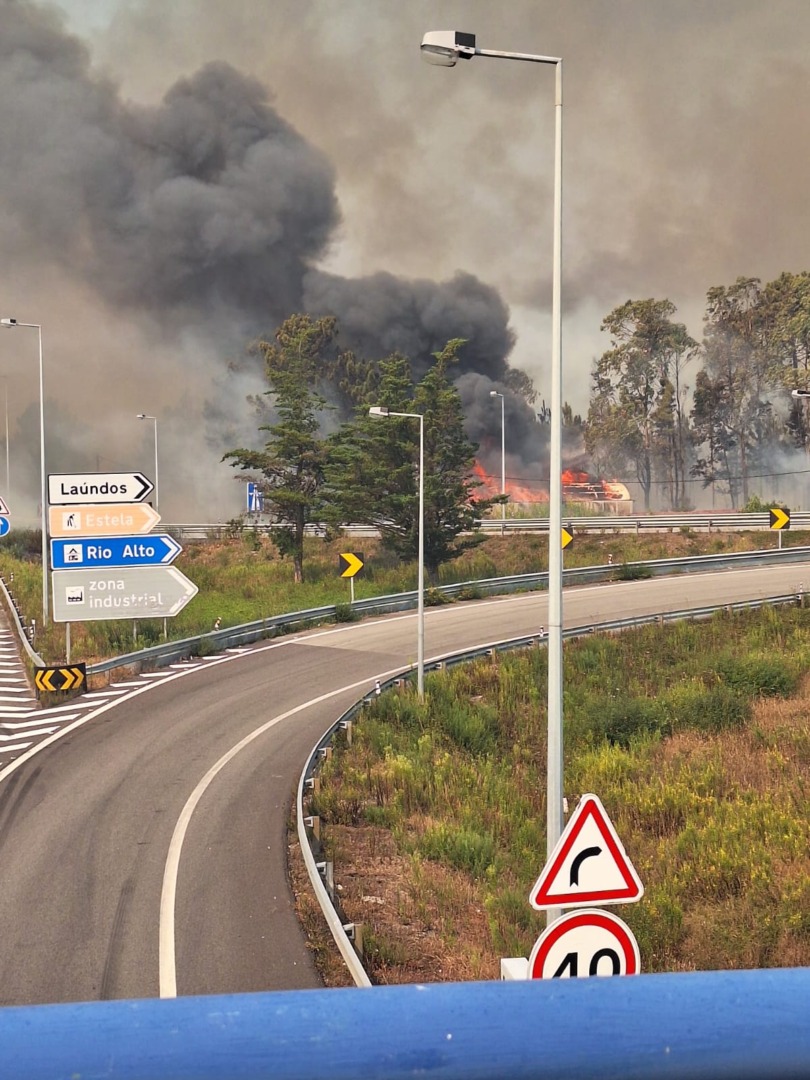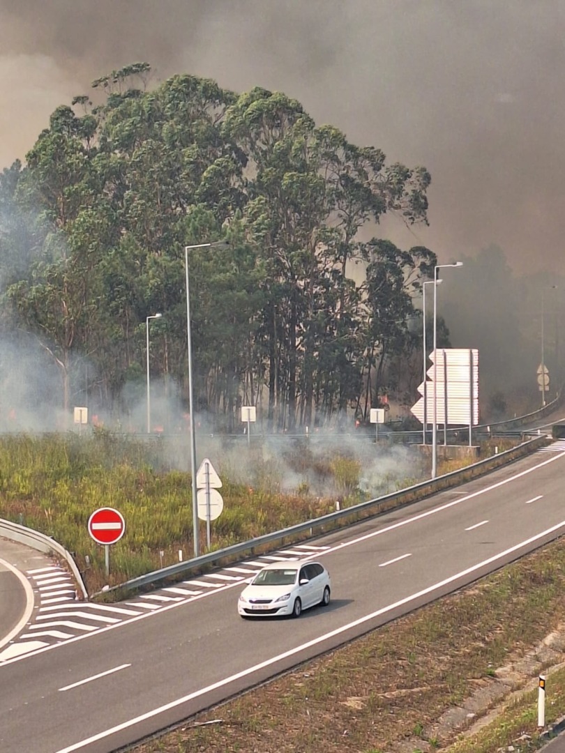 O incêndio já é visível na A28, uma vez, que já estão a ardem os dois lados da estrada.