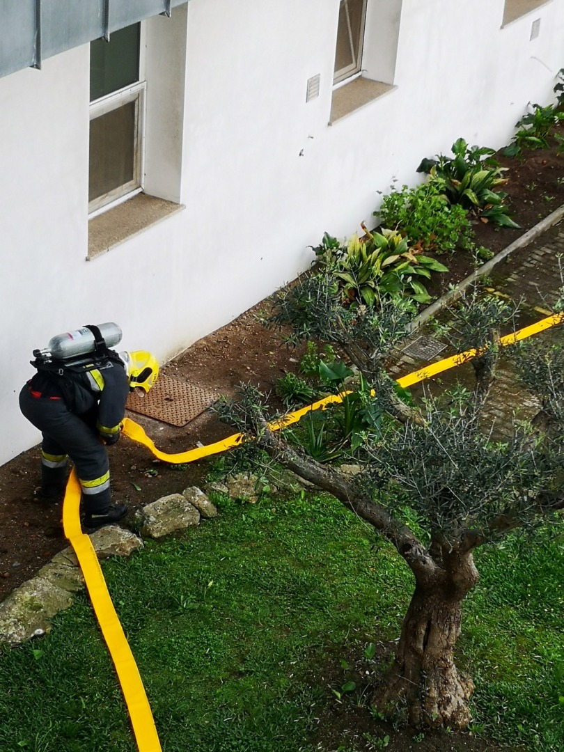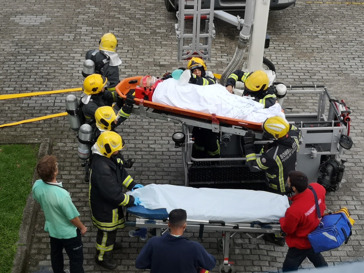 O alarme de incêndio soou pelas 10h30. No simulacro, estiveram envolvidos cerca de 80 elementos, entre profissionais de saúde e forças de proteção civil e de segurança.