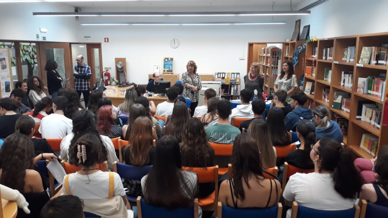 Sandra Pereira, deputada do PCP no Parlamento Europeu, esteve na Escola Secundária Rocha Peixoto, na passada sexta-feira, para uma sessão com alunos e professores.