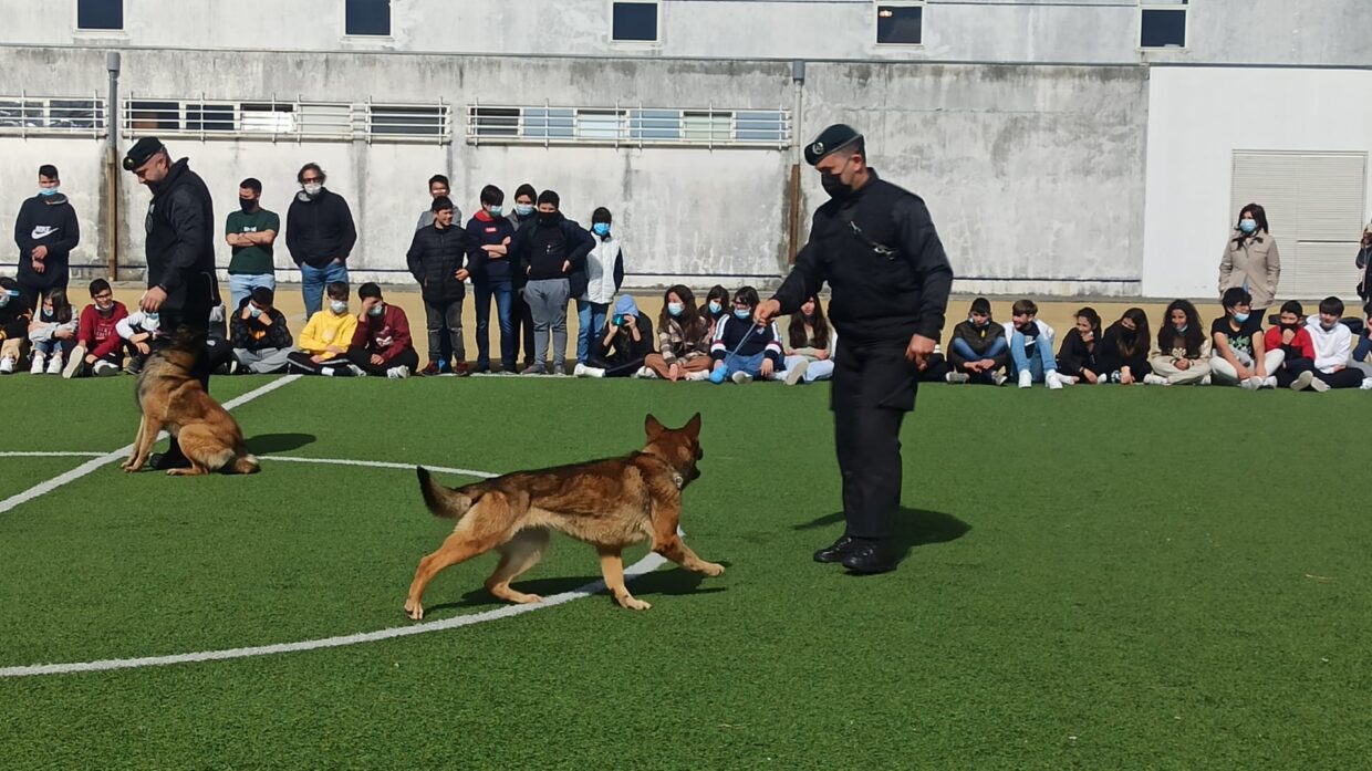 A Escola Básica de Rates recebeu, nesta quarta-feira, uma demonstração do grupo cinotécnico da GNR no âmbito do 17º Fórum de Formação e Opções Profissionais da Póvoa de Varzim.