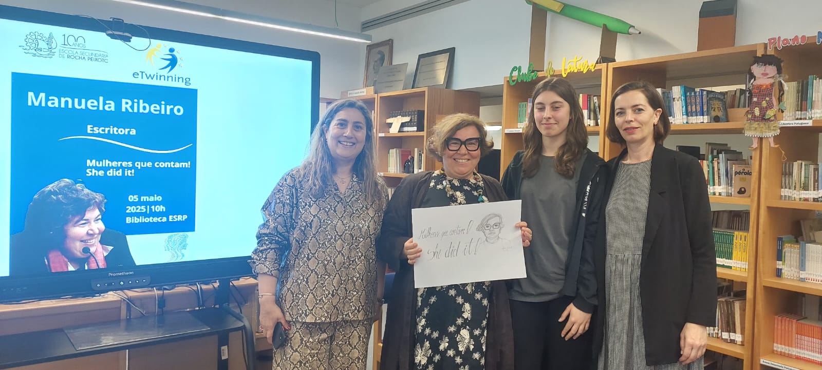 A Escola Secundária Rocha Peixoto promoveu recentemente mais uma sessão no propósito do projeto europeu eTwinning ‘Mulheres que Contam/She did it’, uma iniciativa que continua a destacar figuras femininas marcantes no panorama cultural. A convidada desta sessão foi Manuela Ribeiro, gestora cultural, escritora e coordenadora das Correntes d’Escritas, evento literário de referência nacional.