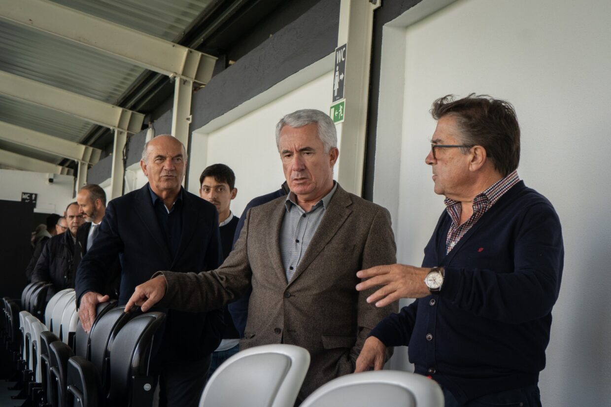 A visita passou pelos “balneários, zonas complementares e zonas técnicas”, seguindo depois para o relvado que sofreu uma “grande intervenção”.