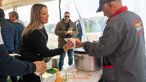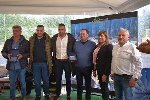 Antes dos Parabéns cantados num coro a uma só voz, a família Carvalho homenageou três dos seus colaboradores que já trabalham na empresa há 25 anos. Manuel Faria, Rui Couto e Joaquim Ferreira foram distinguidos com uma peça alusiva. A festa continuou, com música, brindes e nem a chuva foi impedimento para as comemorações.