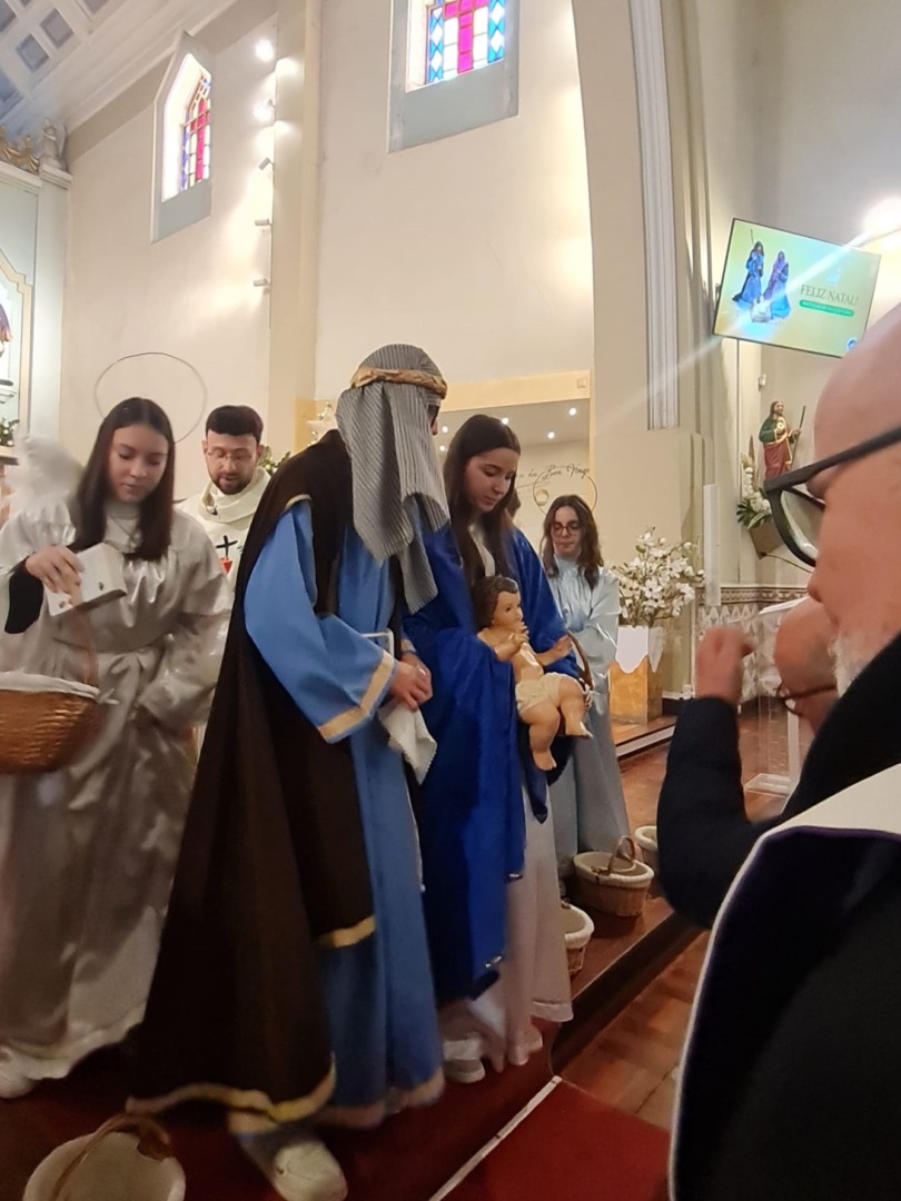 Num gesto especial, o sacerdote concedeu a Bênção Papal, reforçando a mensagem de paz, esperança e amor que o Natal inspira. A celebração ganhou ainda mais vida com a encenação do Evangelho pelos Escuteiros e Jovens da paróquia, aproximando a narrativa do nascimento de Jesus das crianças e famílias presentes.