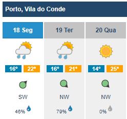 No entanto, as temperaturas não devem baixar consideravelmente. Para o dia de terça-feira, amanhã, a máxima é de 21ºC e a mínima de 17ºC para a Póvoa de Varzim – em Vila do Conde, a previsão é idêntica, sendo que a mínima baixa para 16ºC.
