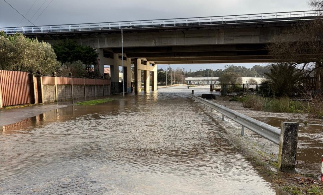 Devido à acumulação de água, a Rua das Calçadas, no troço entre Touguinha e a cidade Vila do Conde, está cortada ao trânsito, na zona localizada que atravessa a A28 por debaixo.