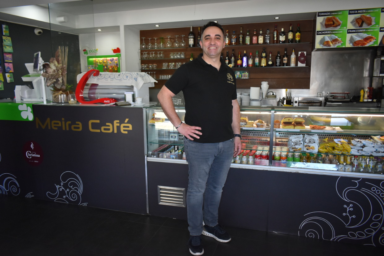 Gabriel Meira é o rosto do Meira Café desde 2007. Herdou do pai, Francisco, o negócio. “O meu pai emigrou com 15 anos para o Brasil, em 1957. Lá, trabalhou em padaria, foi trabalhar para um tio, e começou aí o gosto dele pelo co- mércio”, recorda.
