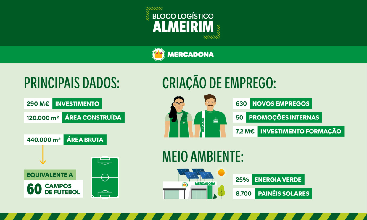 A empresa de supermercados Mercadona tem vindo a consolidar-se no cenário português, tendo inaugurado na semana passada o Bloco Logístico de Almeirim, um investimento de 290 milhões de euros. Este bloco vem complementar o Bloco Logístico da Póvoa de Varzim, no qual a empresa já investiu 84,5 milhões de euros, informa em nota de imprensa.