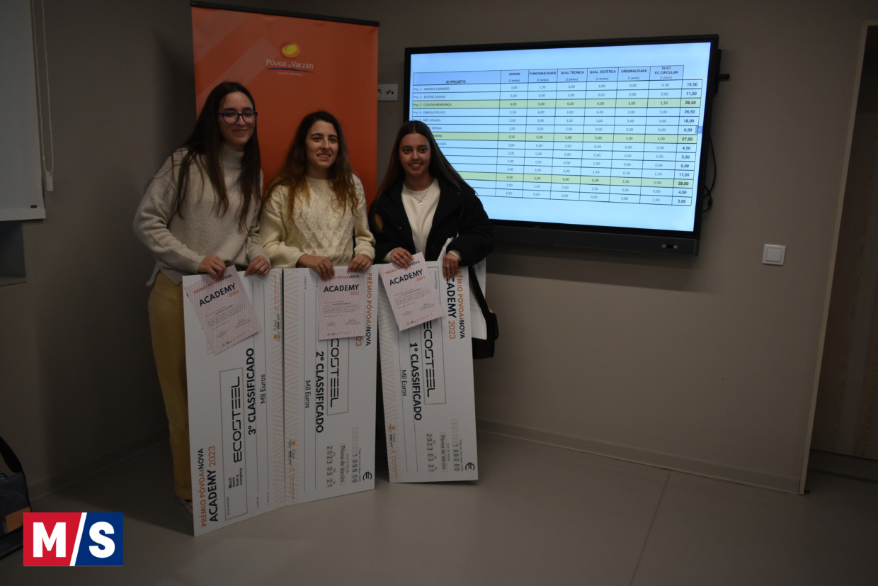 As três alunas da Escola Superior de Media Artes e Design (ESMAD) do Instituto Politécnico do Porto receberam, cada uma, um cheque de mil euros, sendo que a Cláudia Mendonça foi ainda atribuído um estágio remunerado na Ecosteel.