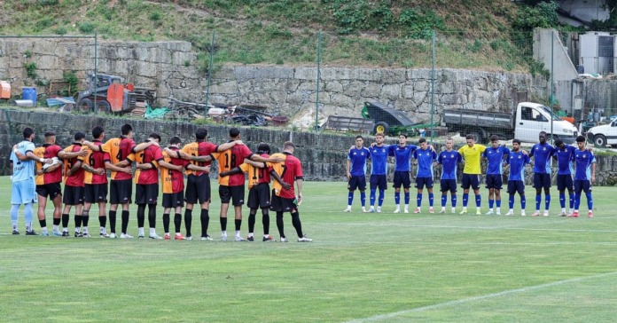 Antes do jogo-treino, foi realizado um minuto de silêncio em memória de Diogo Jota e André Silva, jogadores vitimas de um trágico acidente na madrugada da passada quinta-feira. Foto Rio Ave FC.