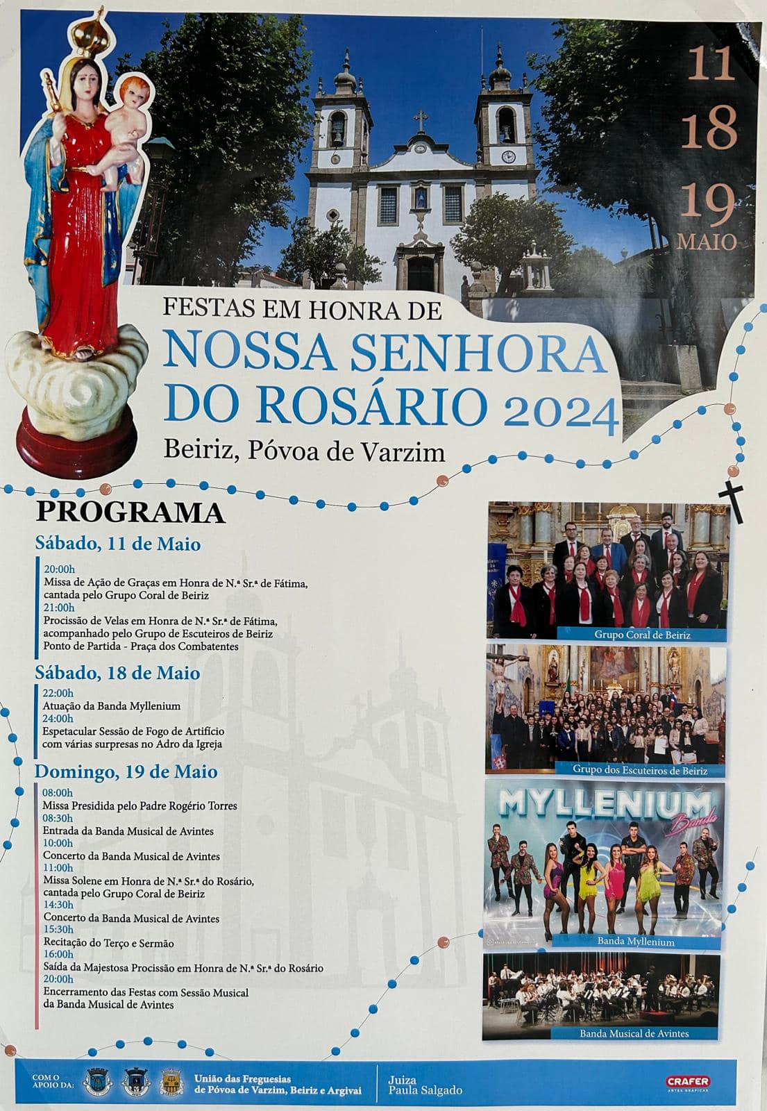 Também neste fim de semana, decorrem na mesma freguesia poveira as Festas em honra de Nossa Senhora do Rosário. Consulte os programas de ambas as festas na galeria seguinte: