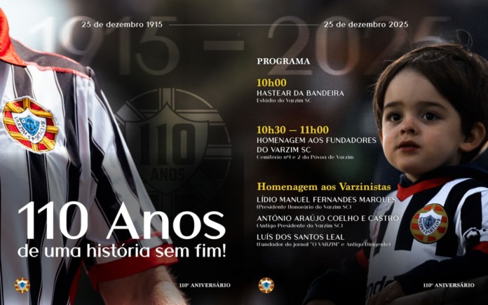Com o lema “110 anos de uma história sem fim!”, esta celebração reafirma a força do Varzim Sport Club como um clube que não vive apenas de resultados, mas de valores, memória e paixão. Um aniversário que une adeptos, dirigentes e toda a comunidade poveira em torno de um legado que continua a escrever-se.